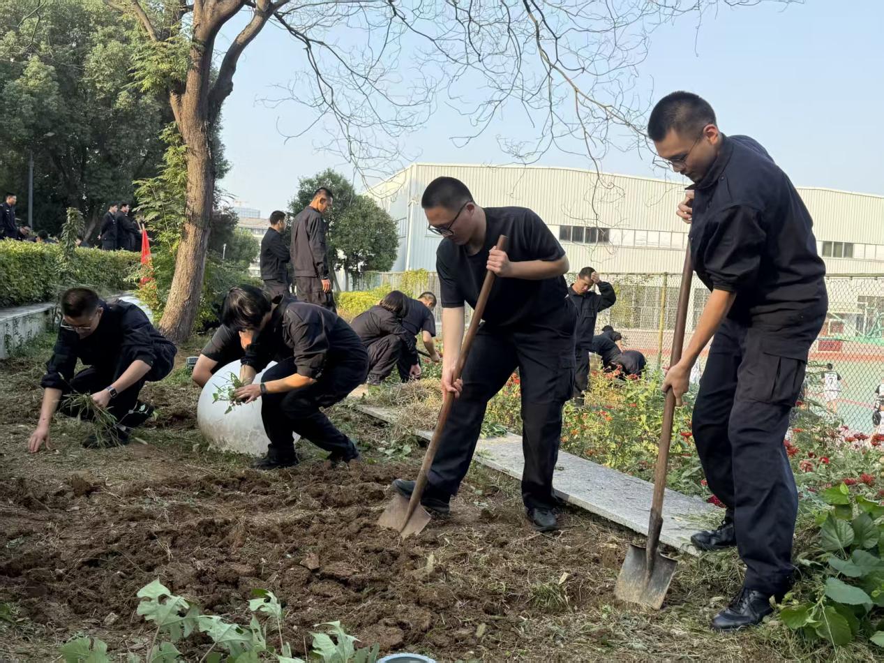 10月28日下午3點,伴隨著鐵鍬、水壺等工具的有序分發,活動正式拉開序幕。同學們手持工具分組行動,或揮鍬挖坑、或扶苗填土、或澆水固根,現場一派熱火朝天的勞動景象。勞動間隙,指導老師結合現場綠植品類,圍繞澆水頻次、土壤肥力維護等實用知識展開細致講解,讓同學們既掌握了綠植培育的 “硬技能”,又體會了勞動的樂趣。