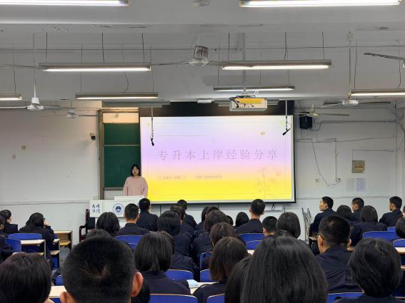 講座中,焦敏和谷微微結合自身備考經歷,圍繞專升本的政策解讀、院校選擇、復習方法、時間管理及心理調適等方面進行了細致講解。她們以生動的案例和切實的心得體會,為在場同學提供了寶貴的備考策略與建議,并鼓勵學弟學妹珍惜在校時光,打牢專業基礎,積極提升綜合素質。