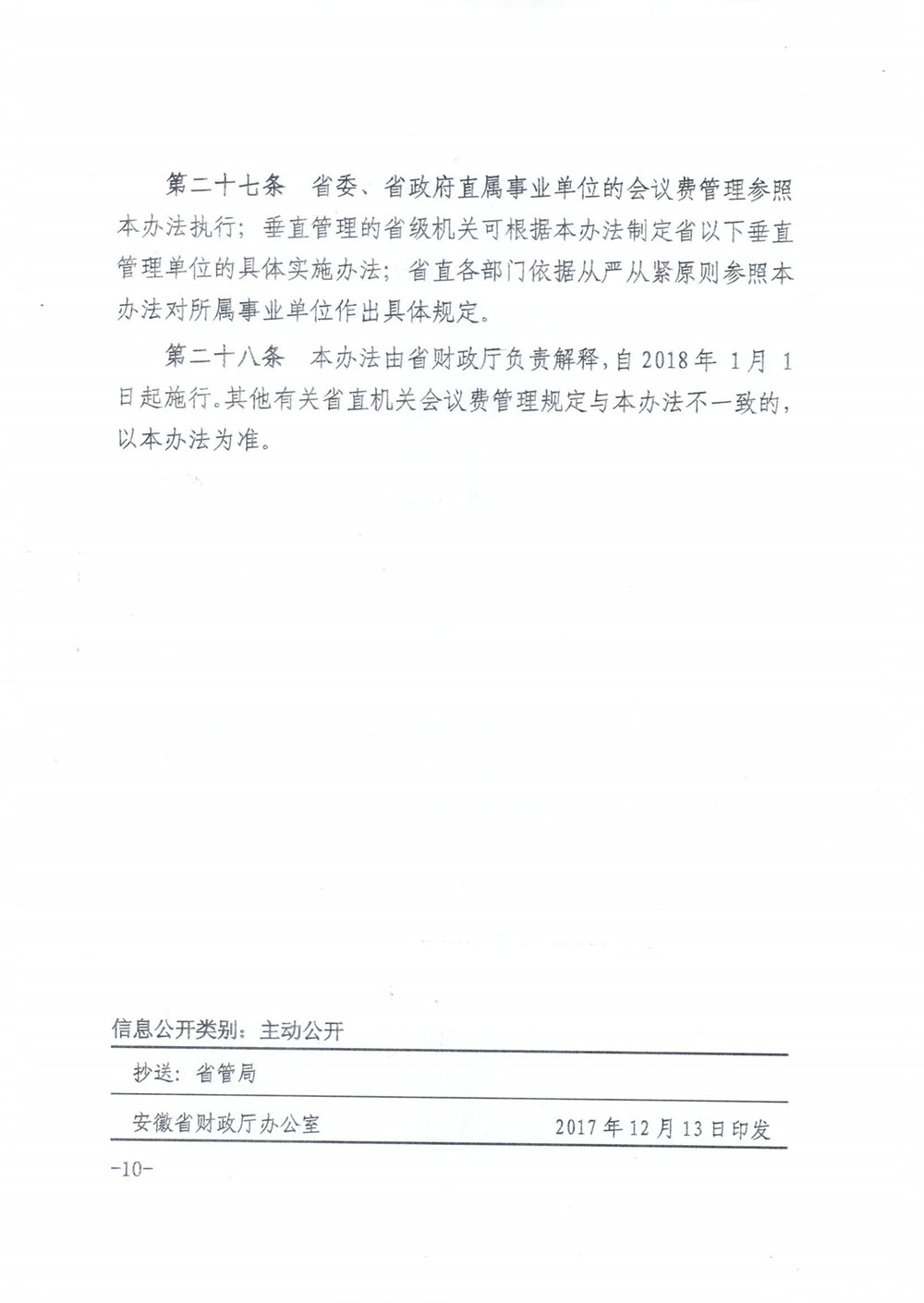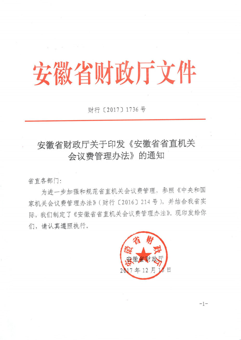 安徽省財政廳關于印發《安徽省省直機關會議費管理辦法》的通知