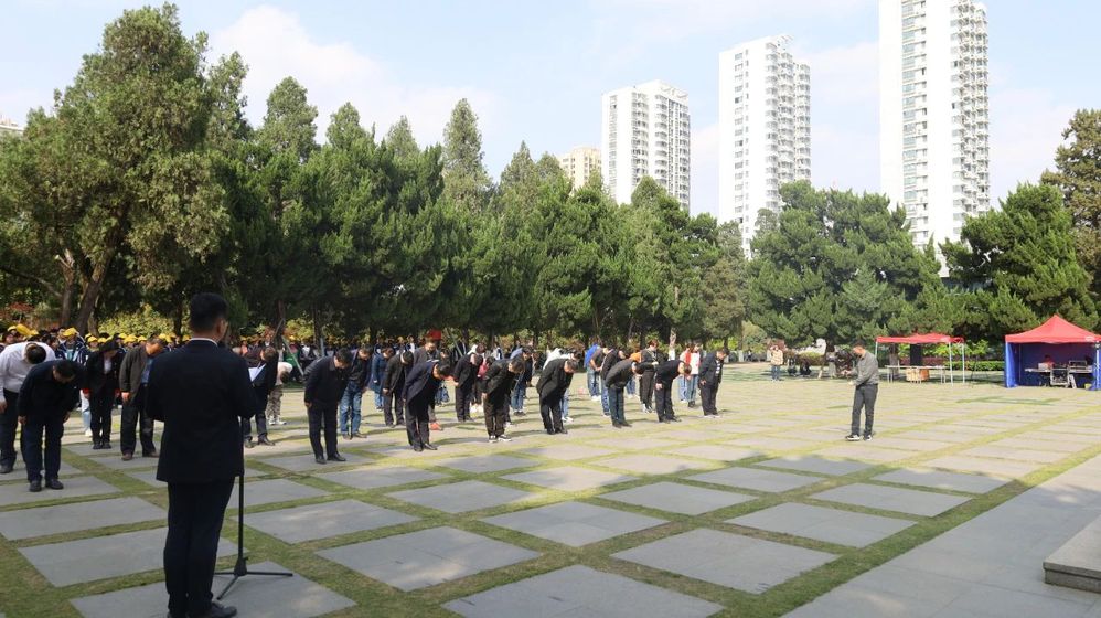 在烈士紀念碑前,全體黨員莊嚴肅立,低頭默哀,向革命先烈表達自己深深的緬懷之情。