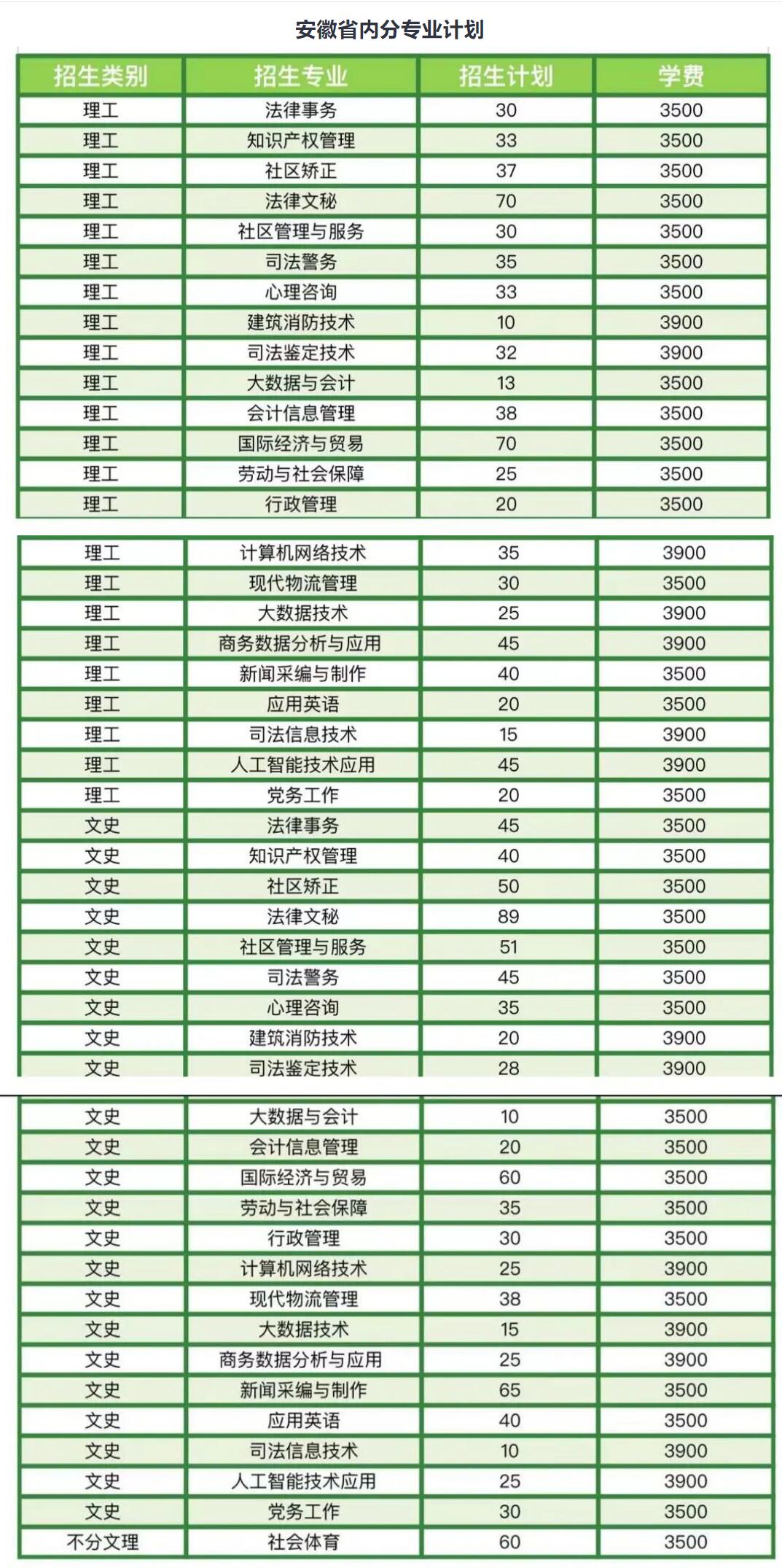 院校性質:省屬院校,安徽省司法廳主管的全省唯一一所司法行政系統所屬院校,也是安徽省唯一一所由中央編辦、人力資源和社會保障部、司法部、教育部、財政部、國家公務員局聯合發文(人社部發〔2018〕20號)認定的招收司法行政警察類專業學生的司法類普通高等學校。
