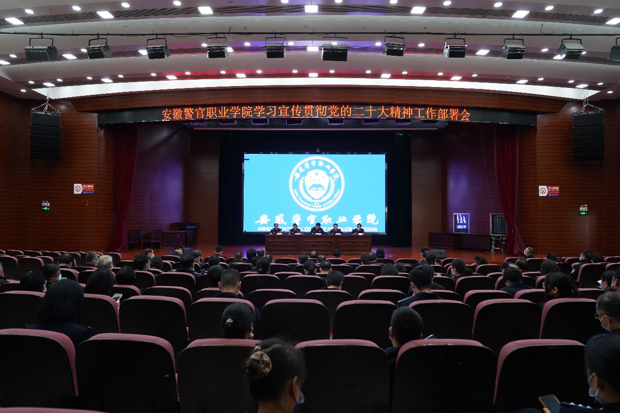 會議指出,學習宣傳貫徹黨的二十大精神是全系統當前和今后一個時期的首要政治任務,從現在開始到明年年初,是黨的二十大精神集中學習宣講階段,學院全體師生員工要按照中央以及省委省廳統一部署,結合學院實際,精心組織安排,全力營造學習宣傳貫徹黨的二十大精神的濃厚氛圍。會上宣讀了《安徽警官職業學院學習宣傳貫徹黨的二十大精神的實施方案和任務清單》。