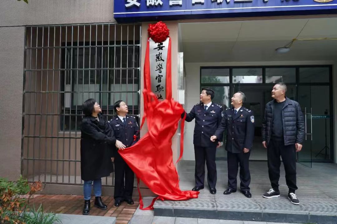 儀式上,張國昌、胡愛國、黃金紅、龍紅祥、洪家金共同為安徽警官職業學院老年大學揭牌。
