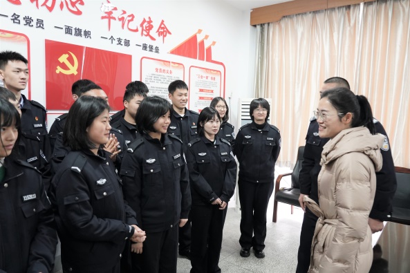專題宣講前,劉曉妮來到學院信息管理系,參加團員青年學習宣傳貫徹黨的二十大精神座談會,與警院青年學生進行面對面互動交流,分享自己關于黨的二十大精神的深刻體會、參會見聞以及基層工作經歷,并現場解答學弟學妹們提出的有關問題。劉曉妮在交流中勉勵警院青年們要勇于擔當時代重任,把自身遠大理想同黨的路線方針結合起來,腳踏實地、磨練本領、埋頭苦干,在全面建設社會主義現代化國家新征程上拿出新時代青年人的朝氣、勇氣、志氣、底氣,挺膺擔當,激揚青春,在全面建設社會主義現代化國家新征程上唱響青春之歌。