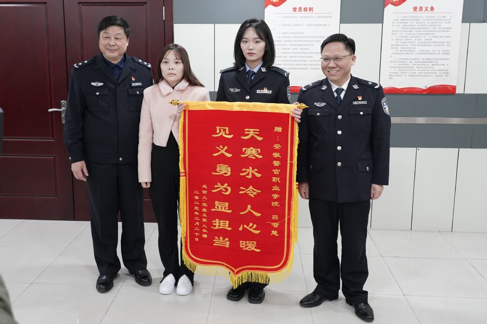 見義勇為暖人心,心懷感恩送錦旗。2月20日上午,河南南陽市市民張鑫及其父母專程來到警院,向我院警察系2021級司法警務4班學生呂智慧贈送了題為 “天寒水冷人心暖,見義勇為顯擔當”的錦旗,感謝其見義勇為的高尚美德。