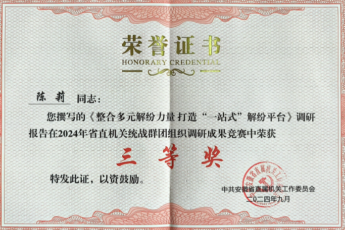 近日,學院教師陳莉、楊東欣代表省司法廳參加2024年省直機關統戰群團組織調研成果競賽,分別榮獲三等獎、優秀獎。